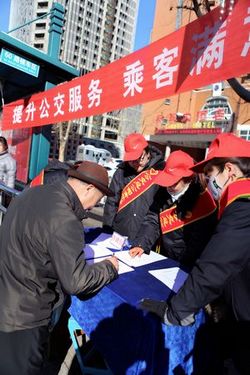 從2月21日起,首度在百貨大樓站、唐山西站、廣場站、北環樞紐站等市區客流量密集的站點,設立咨詢臺,懸掛“提升公交服務乘客滿意度調查”條幅,工作人員頭戴小紅帽,身披綬帶,為過往乘客發放“公共交通乘客滿意度調查表”,一位乘客填完調查表后,感概的說:“這幾年咱們唐山的公交發展變化真的很大,綠色環保的空調車越來越多了,冬天不冷夏天不熱。尤其是去年的世園會夜場惠民直通車,從家門口到世園會,兩點一線,又惠民又方便。”許多過往的市民也在咨詢臺向工作人員主動索要調查表,大家都想為公交的發展獻計獻策。