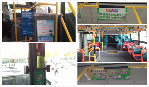 踏上60路的公交車廂,迎面給人的感覺是清爽而溫馨。從一進門處的“排隊乘車有秩序、上班辛苦別大意”的提示語,到設立在司機身旁的“便民袋”;從“公交車廂勿飲食、清新環境靠大家”,到“下車注意回頭望、隨身物品要帶上”的溫馨提示,每一處都隨乘客的步伐而用心設置。特別是在每個車廂窗框旁安裝的——用飲料瓶制作的“我也愛吃口香糖”的簡易垃圾籃,不僅美化了車廂環境,更起到了很好的宣傳提示作用。