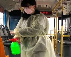 2月24日2路第一天恢復(fù)運(yùn)營,每部參運(yùn)車輛多出一名隨車體溫檢測員,王穎跟丈夫分在同車組。早晨6:00,夫妻倆已經(jīng)到2路始發(fā)站唐山站,開始出車前的準(zhǔn)備工作:檢查完車輛安全,再打掃干凈衛(wèi)生,噴灑消毒液對車廂每處角落進(jìn)行徹底消殺。王穎跟丈夫一對一天輪流開車、進(jìn)行登記,從唐山站行駛到啟新立交橋后,就要停留兩分鐘嚴(yán)格落實(shí)一車次一消毒。遇見急躁的乘客,王穎就耐心勸導(dǎo);有不明白的老年乘客想乘車,她也總不厭其煩地解釋溝通。