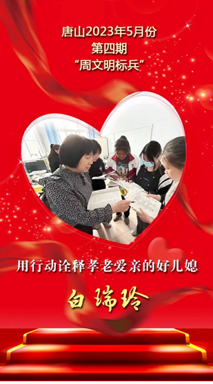 白瑞玲,遵化市團瓢莊鄉東下院寺中學教師。1995年她的婆婆突發心梗去世后,丈夫在外工作無法一直在家里幫襯,面對家中深受打擊身體大不如前的公公和出生剛滿兩個半月的女兒,白瑞玲毅然挑起了整個家庭的重擔。每天她在學校完成畢業班英語教學和班主任的工作,回到家后要備課、洗衣做飯、照顧老幼,周末和假期還得抓緊時間到自家農田干活。小叔離異后獨自去外地打拼,白瑞玲又承擔起撫養6歲侄女的責任,15年來她視侄女若己出,悉心教育,從無半句怨言。今年3月小叔突發心梗住院,白瑞玲白天在學校教畢業班,下班再做好飯菜送去醫院。多年來,她用孝老愛親的至美情懷,詮釋著生活的真諦,也為社會傳播了正能量。