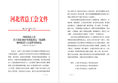 2023年4月28日,河北省總工會發布《關于2023年河北省五一勞動獎和河北省工人先鋒號的決定》,唐山交發集團公交總公司二公司 2 路營運車隊被授予2023年“河北省工人先鋒號”榮譽稱號,唐山交發集團公交總公司四公司 46 路駕駛員翟澤明被授予2023年河北省五一勞動獎章。